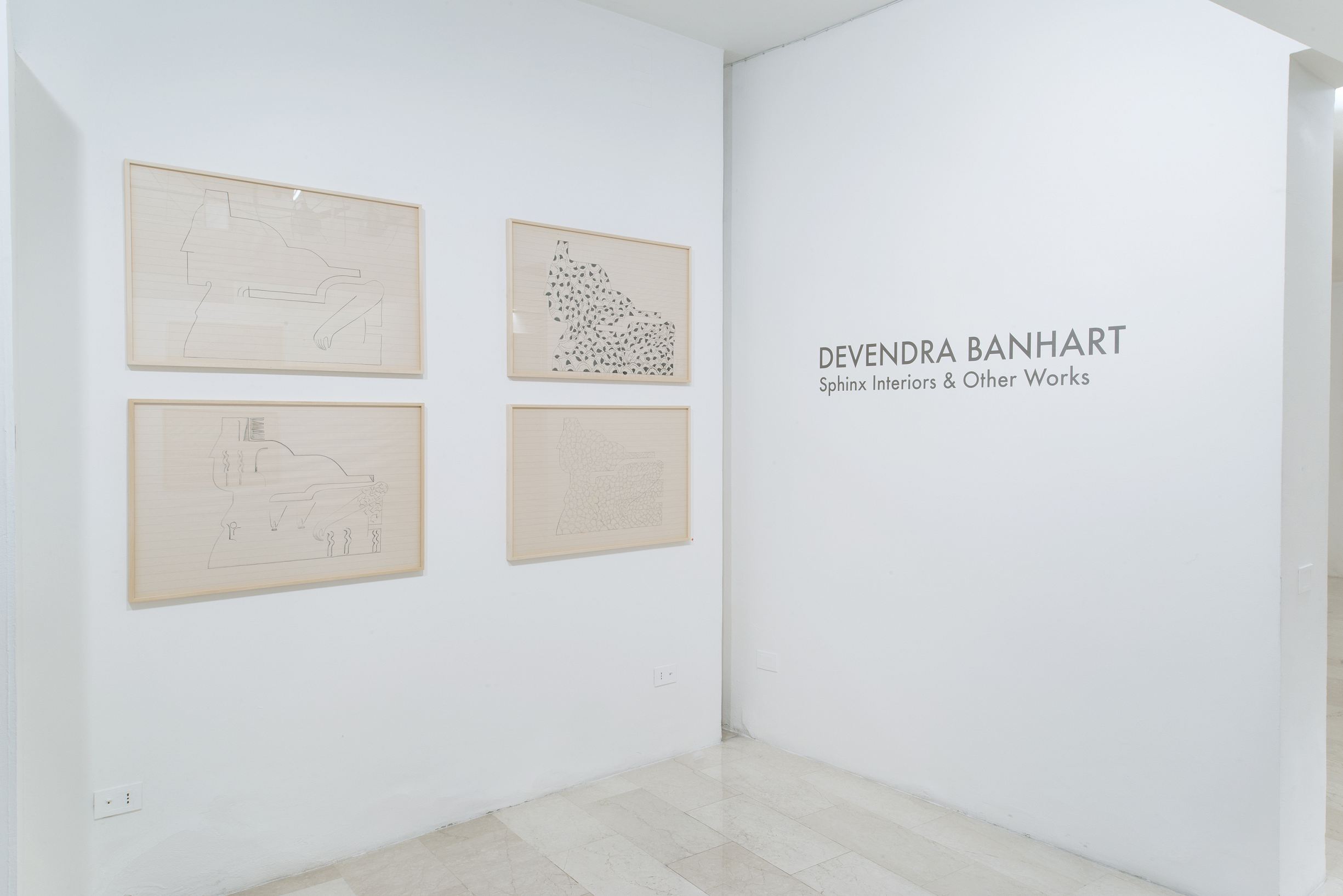 All of Devendra's monochromatic “sphinxes” are created with Indian ink on vintage paper,